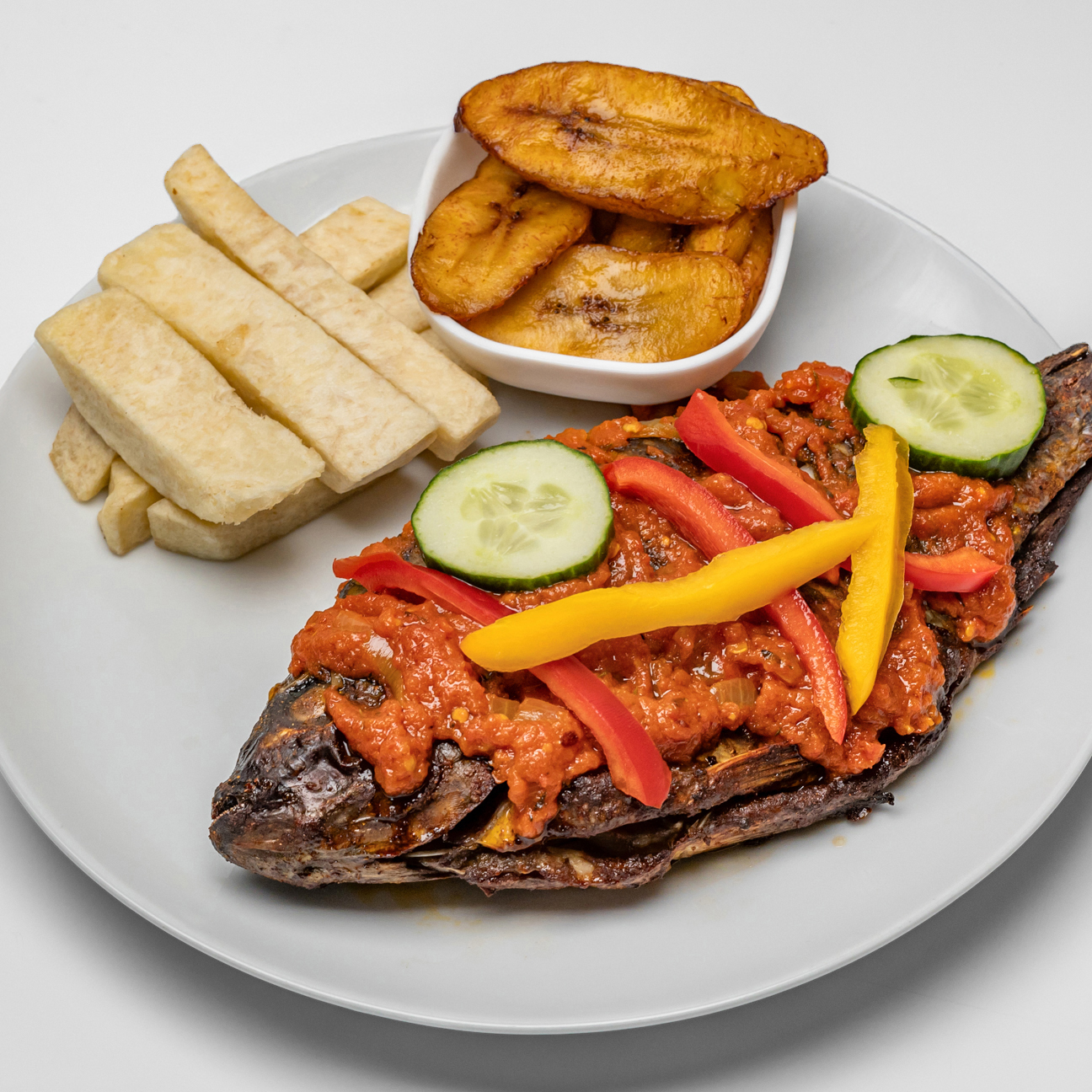 Grilled Tilapia Fish + Plantain + Yam.